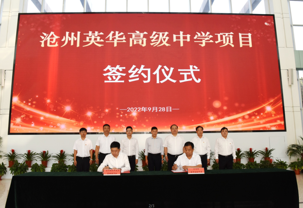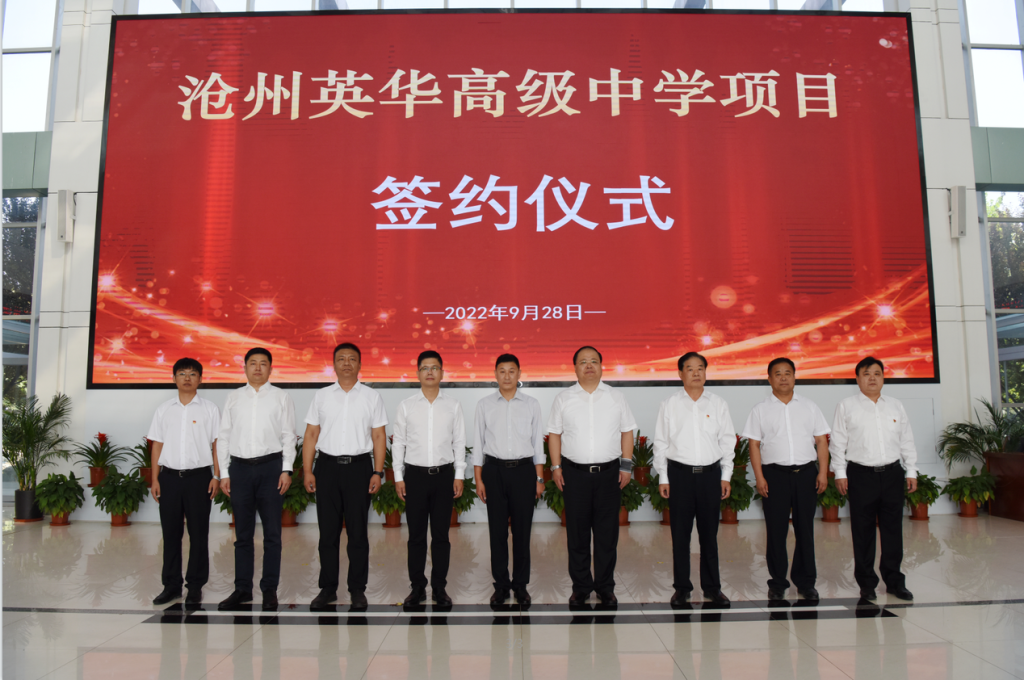 大元集團黨委書記、董事局主席李建國一行參加滄州市經濟開發區管委會與滄州英華高級中學項目簽約儀式