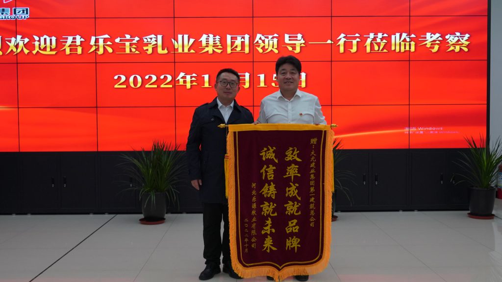 會上,魏總監介紹君樂寶乳業發展史,表示,很榮幸來到大元集團進行參觀,因為多年良好的合作關系倍感親切,感受到大元集團濃厚的黨建文化深感震撼,并對大元集團建設牧場項目期間面對諸多不利因素,敢于應戰、不提困難的精神,以及嚴把工程質量,超額完成業主節點計劃的行動致以誠摯的謝意。表示,君樂寶集團與大元集團有著高度相似的企業文化和社會責任感,期待與大元集團的長期戰略合作。